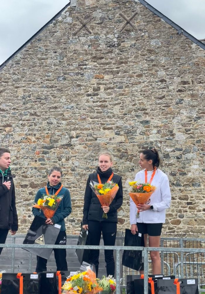 Beaucoup plus au nord, Marie Béasse et Marie Le Griffon participaient au trail de 12km des traditionnelles Foulées d’automne de Hillion à mi-chemin entre Saint Brieuc et Lamballe. Marie Béasse🥇se classe 1ère féminine en 56’13 quand Marie Le Griffon finit 6e féminine en 1h04. Ces résultats sont d’autant plus beaux que l’une et l’autre participaient au 10km route de Rennes.