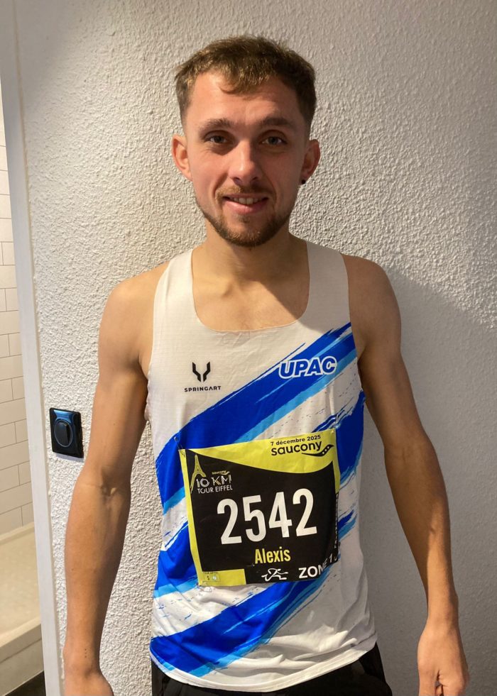 Enfin la saison sur route continuait un peu partout; Soulignons tout de suite la très belle course d’Alexis au10 km de la Tour Eiffel. C’était sa première course sous les couleur de l’Upac et cerise sur le gâteau il signe un nouveau record personnel en 33’45.
