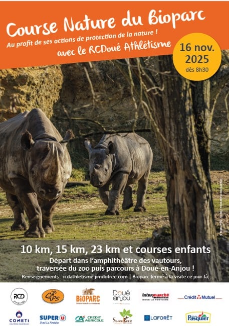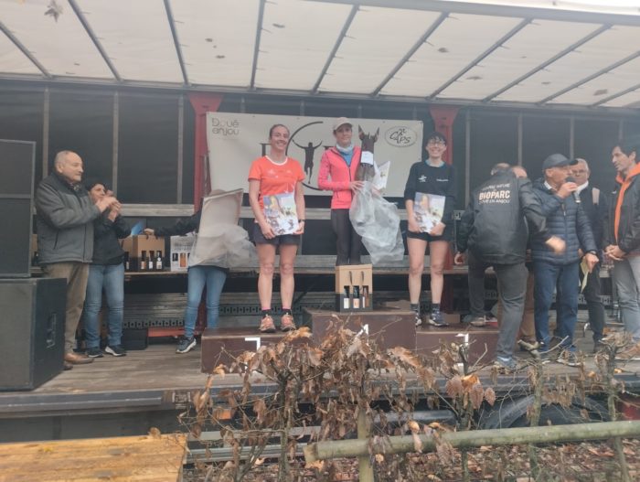 Du côté de Doué la Fontaine, l’histoire ne dit pas si Emilie Rouget s’est sentie poursuivie par les rhinocéros entre aperçus au départ mais elle a couvert le 10 km du Trail du bioparc à très vive allure (45’57). Si rapidement qu’elle finit même 1ère féminine. Seul regret d’Emilie pour la photo souvenir sur le podium : « Dommage que le tee shirt de l’upac n’est pas encore arrivé ! »